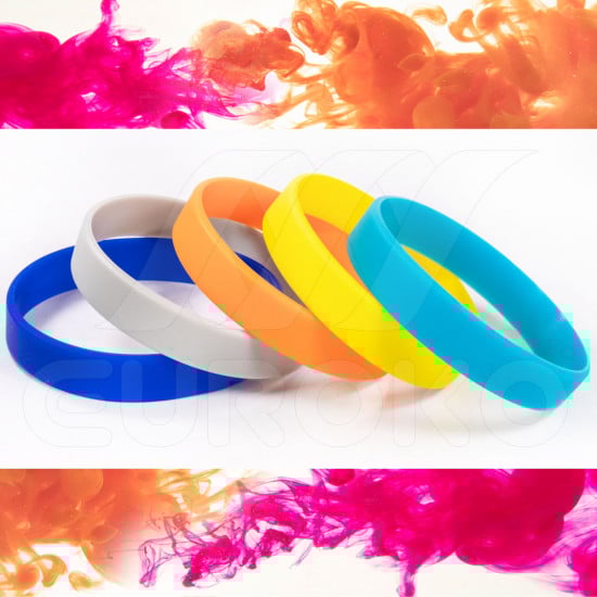Unsere einfarbige Silikonbänder sind in 14 Farben sofort erhältlich.