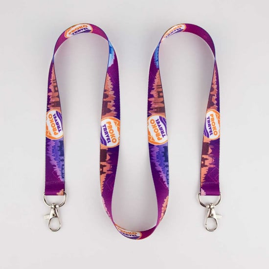 Geripptes Schlüsselband mit doppeltem Karabiner mit eigenem Druck, direkt vom Hersteller! Wir produzieren Lanyards mit vollfarbigem Druck (full color Druck) zum günstigen Preis!