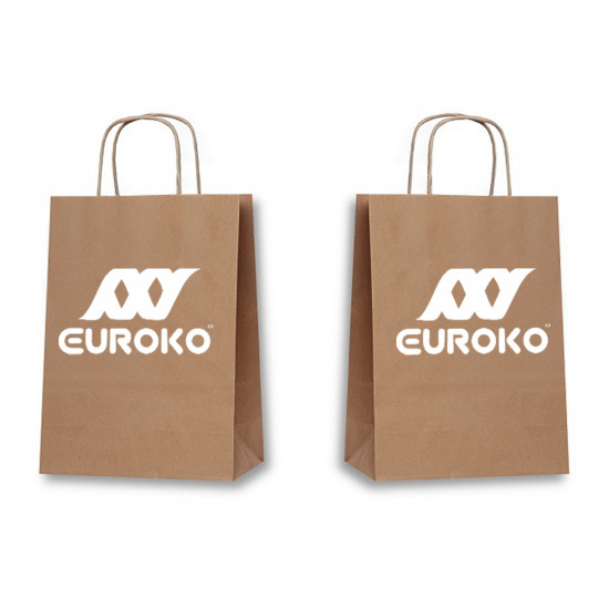 Große, braune Geschenktragetasche mit Kordelgriff und Logo von Euroko! Eine exklusive Verpackung, die jeden Kunden überzeugt!